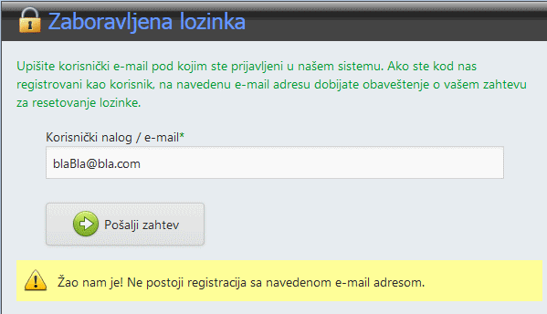 I u ovom slučaju sistem vam proverava ispravnost e-maila na upis, format i registraciju.